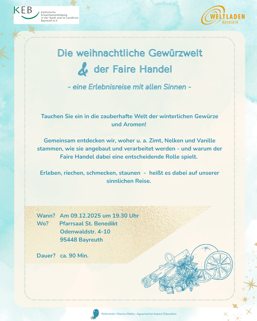 • 09.12.2025 19.30 Uhr Die weihnachtliche Gewürzwelt & und der faire Handel